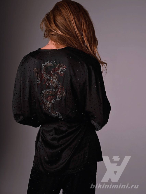 • Шелковое кимоно, украшенное стразами, — это изысканный и эффектный предмет одежды, который станет настоящим акцентом в любом образе